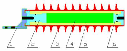 其中:1—连接金具 2—下电极 3—硅橡胶外套